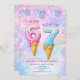 Galaxy Glitter Disco Ball 7 Birthday Ice Cream Invitation