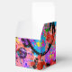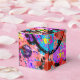 If colour energises you like it does me, then these favour boxes are for you. Covered with a digital graffiti that I designed, it has shades of coral, orange, lavender, purple, turquoise, midnight blue, white, yellow, lime green, pink, black and more. The layers of colours and varying opacity make for fun favour boxes.