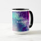 White Coffee mug with a black rim and handle. Add some happiness to your day with bright galaxy colours and a little bit of coffee!
