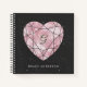 This trendy, outer space notebook design features a blush pink, bokeh geometric heart with a black galaxy and stars background, and your monogram in the centre.