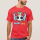 I give wanted to give this a 4 instead of a 5 because these Basic DARK T0shirts run unexpectedly SLIM or Narrow. Which is great if you do not have a potbelly, but I have a paunch. It isn't the shirt's fault that I've got a beer belly. The design and shirt itself is a quality cotton shirt. The color is more of a deep purple, but still a very pretty color. The Basic DARK T-shirts run a bit SLIMMER than the Basic Ts. The neck is a fraction narrower (or seems to be narrower) also. I'm a paunchy middle-aged woman and my neck is 12 inches (31cm) thick and the neckline fell about the same as in the photo of the man, and I had the desire to tug it a bit. So if you're a thick necked man or like loose shirts, be aware these are slimmer shirts. Once I get rid of my lockdown paunch it'll look great. The shirt washed well in cold water with no apparent bleeding. We don't have a dryer, so it hung dry. Did not shrink. Love the colors and the design. The design looks smaller on my shirt than it does on the model on-line. But still, it looks good on the shirt. The printing looks as it does on the model, just the size seems fractionally smaller. Washed garment in cold water, hung dry and design appeared unaffected.