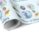 This adorable wrapping paper features features colourful planets with faux gold foil stars.