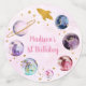 This sweet table confetti features colourful planets with faux gold foil stars.