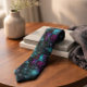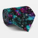 This galaxy print necktie features a vivid cosmic star pattern in deep teal, magenta, and midnight black. The design captures the movement of space—nebula swirls and scattered stars—creating a bold, modern statement that feels both artistic and refined.