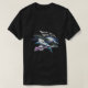 I give wanted to give this a 4 instead of a 5 because these Basic DARK T0shirts run unexpectedly SLIM or Narrow. Which is great if you do not have a potbelly, but I have a paunch. It isn't the shirt's fault that I've got a beer belly. The design and shirt itself is a quality cotton shirt. The color is more of a deep purple, but still a very pretty color. The Basic DARK T-shirts run a bit SLIMMER than the Basic Ts. The neck is a fraction narrower (or seems to be narrower) also. I'm a paunchy middle-aged woman and my neck is 12 inches (31cm) thick and the neckline fell about the same as in the photo of the man, and I had the desire to tug it a bit. So if you're a thick necked man or like loose shirts, be aware these are slimmer shirts. Once I get rid of my lockdown paunch it'll look great. The shirt washed well in cold water with no apparent bleeding. We don't have a dryer, so it hung dry. Did not shrink. Love the colors and the design. The design looks smaller on my shirt than it does on the model on-line. But still, it looks good on the shirt. The printing looks as it does on the model, just the size seems fractionally smaller. Washed garment in cold water, hung dry and design appeared unaffected.