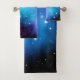Galaxy towel set with a cosmic splash of blue and purple nebula space clouds and sparkling stars in a black night sky. ♡ Idyllfire