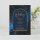 Galaxy Starry Night Navy Blue Gold Wedding Invitation