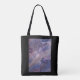 Shoulder tote with blue and purple galaxy with scattered white stars. Original artwork by Ray Bean is watercolor on watercolor paper.