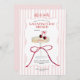 Featuring a blush-pink striped background, watercolor champagne coupe with cherries, and a playful ribbon bow — the perfect invite for brunch, bubbly, charcuterie, or desserts with your favorite girls.