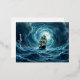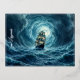 Galeon ship storm moonlit ocean voyage foil holiday postcard