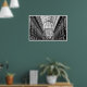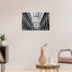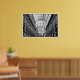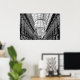 Black and white poster of Galleria Vittorio Emanuele in Milan, Italy. While walking through this shopping centre, look up and experience the arching glass and cast iron roof, a popular design for 19th-century arcades. On both sides of the street you will discover beautiful statues.