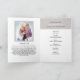 A modern gallery of 3 photos headlines this celebration of life program. Easy to customise for your loved one's memorial. Includes space for an obituary, service program and memorial details or message from the family