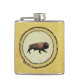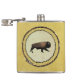 A galloping bison is painted on the skin side of a beaver pelt stretched on a willow hoop. The bison (Bison bison), the largest land mammal in North America, is considered a keystone species: they once roamed the continent in great herds, and their grazing pressure helped shape the ecology of the Great Plains. Two subspecies or ecotypes have been described: the plains bison (Bison bison bison), smaller in size and with a more rounded hump, and the wood bison (Bison bison athabascae) – the larger of the two and having a taller, square hump. The bison is a relative newcomer to North America, having originated in Eurasia and migrated over the Bering Strait About 10,000 years ago it replaced the steppe bison (Bison priscus), a previous immigrant that was much larger. It is thought that the steppe bison became extinct due to a changing ecosystem and hunting pressure following the development of the Clovis point and related technology, and improved hunting skills. During this same period, other megafauna vanished and were replaced to some degree by immigrant Eurasian animals that were better adapted to predatory humans. The extant bison, technically a dwarf form, was one of these animals. There were once an estimated 20-30 million bison, also referred to as buffalo, roaming North America. Their range once roughly comprised a triangle between the Great Bear Lake in Canada's far northwest, south to the Mexican states of Durango and Nuevo León, and east along the western boundary of the Appalachian Mountains. The first thoroughfares of North America, except for the time-obliterated paths of mastodon or musko, were the traces made by bison and deer in seasonal migration and between feeding grounds and salt licks. Many of these routes, hammered by countless hoofs instinctively following watersheds and the crests of ridges in avoidance of lower places' summer muck and winter snowdrifts, were followed by Native Americans and were invaluable to explorers.. The term "buffalo" may be considered a misnomer for this animal, as it is only distantly related to either of the two "true buffalo," the Asian water buffalo and the African buffalo. However, "bison" is a Greek word meaning ox-like animal, while "buffalo" originated with the French fur trappers who called these massive beasts bœufs, meaning ox or bullock – so both names, "bison" and "buffalo," have a similar meaning. In reference to this animal, the term "buffalo," which dates to 1635, has a much longer history than the term "bison," which was first recorded in 1774.The American bison is more closely related to the wisent or European bison. Unregulated shooting of bison, which culminated in mass slaughters during the 1870s, reduced the population to 1,091 in 1889. Today, approximately 500,000 bison live across North America. Most are not pure bison but rather have been cross-bred with cattle in the past and are raised as livestock on ranches. Fewer than 30,000 bison are in conservation herds, and fewer than 5,000 are free-ranging and disease-free. Today bison are ecologically extinct throughout most of their historic range, except for a few national parks and other small wildlife areas. Yellowstone National Park has the largest population of free-roaming plains bison (about 4,000), and Wood Buffalo National Park has the largest population of free-roaming wood bison (about 10,000). A bison has a shaggy, long, dark brown winter coat, and a lighter weight, lighter brown summer coat. The winter coat is so thick and well insulated that snow can cover its backs without melting. Male bison are slightly larger than females. Plains bison typically weigh from 700 to 2,200 lbs. The heaviest wild bull ever recorded weighed 2,800 lbs. When raised in captivity and farmed for meat, the bison can grow unnaturally heavy and the largest semi-domestic bison weighed 3,800 lbs. The heads and forequarters are massive, and both sexes have short, curved horns that can grow up to 2 feet long, which they use in fighting for status within the herd and for defence. Bison are herbivores, grazing on the grasses and sedges of the North American prairies. Their daily schedule involves two-hour periods of grazing, resting and cud chewing, then moving to a new location to graze again. This regular motion ensures that bison seldom overgraze an area. Bison often rub and roll on the ground creating shallow, saucer-like depressions called wallows. Bison roll in wallow, wet or dry, covering themselves with dust or mud. Past explanations and current hypotheses suggested for wallowing behaviour include grooming behaviour associated with shedding, male-male interaction (typically rutting behaviour), social behaviour for group cohesion, play behaviour, relief from skin irritation due to biting insects; reduction of ticks and lice; and thermoregulation. Wallows were once a common feature of the plains. In winter, bison can dig through deep snow with their heads to reach the vegetation below. Bison have poor eyesight, but have acute hearing and an excellent sense of smell. Bison can reach speeds of up to 35 mph. Bison have a life expectancy of approximately 15 years in the wild and up to 25 years in captivity. Bison mate in late spring and summer in more open plain areas. During fall and winter, bison tend to gather in more wooded areas. During this time, bison partake in horning behaviours. They will rub their horns against trees, young saplings and even telephone poles. Aromatic trees like cedars and pine seem to be preferred. Horning appears to be associated with insect defence as it occurs most often in the fall when the insect population is at its highest. Cedar and pines emit an aroma after bison horn them and this seems to be used as a deterrent for insects. While often secure from predation due to their size and strength, in some areas, bison are regularly predated by wolves. Wolf predation typically peaks in late spring and early summer, with attacks usually being concentrated o