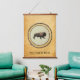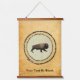 A galloping bison is painted on the skin side of a beaver pelt stretched on a willow hoop. Everything is superimposed on an old paper, or parchment, background image. Customise by adding your own text.