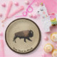 Galloping Bison On Old Paper Paper Plate