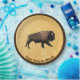 A galloping bison is painted on the skin side of a beaver pelt stretched on a willow hoop. Everything is superimposed on an old paper, or parchment, background image. Customise by adding your own text.