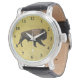 A digital painting of the American bison, or buffalo,  superimposed on a brain-tan leather background image. The bison (Bison bison), the largest land mammal in North America, is considered a keystone species: they once roamed the continent in great herds, and their grazing pressure helped shape the ecology of the Great Plains. Two subspecies or ecotypes have been described: the plains bison (Bison bison bison), smaller in size and with a more rounded hump, and the wood bison (Bison bison athabascae) – the larger of the two and having a taller, square hump. The  bison is a relative newcomer to North America, having originated in Eurasia and migrated over the Bering Strait About 10,000 years ago it replaced the steppe bison (Bison priscus), a previous immigrant that was much larger. It is thought that the steppe bison became extinct due to a changing ecosystem and hunting pressure following the development of the Clovis point and related technology, and improved hunting skills. During this same period, other megafauna vanished and were replaced to some degree by immigrant Eurasian animals that were better adapted to predatory humans. The extant bison, technically a dwarf form, was one of these animals. There were once an estimated  20-30 million bison, also referred to as buffalo, roaming North America. Their range once roughly comprised a triangle between the Great Bear Lake in Canada's far northwest, south to the Mexican states of Durango and Nuevo León, and east along the western boundary of the Appalachian Mountains. The first thoroughfares of North America, except for the time-obliterated paths of mastodon or musko, were the traces made by bison and deer in seasonal migration and between feeding grounds and salt licks. Many of these routes, hammered by countless hoofs instinctively following watersheds and the crests of ridges in avoidance of lower places' summer muck and winter snowdrifts, were followed by Native Americans and were invaluable to explorers.. The term "buffalo" may be considered a misnomer for this animal, as it is only distantly related to either of the two "true buffalo," the Asian water buffalo and the African buffalo. However, "bison" is a Greek word meaning ox-like animal, while "buffalo" originated with the French fur trappers who called these massive beasts bœufs, meaning ox or bullock – so both names, "bison" and "buffalo," have a similar meaning. In reference to this animal, the term "buffalo," which dates to 1635, has a much longer history than the term "bison," which was first recorded in 1774.The American bison is more closely related to the wisent or European bison. Unregulated shooting of bison, which culminated in mass slaughters during the 1870s, reduced the population to 1,091 in 1889. Today, approximately 500,000 bison live across North America. Most are not pure bison but rather have been cross-bred with cattle in the past and are raised as livestock on ranches. Fewer than 30,000 bison are in conservation herds, and fewer than 5,000 are free-ranging and disease-free. Today bison are ecologically extinct throughout most of their historic range, except for a few national parks and other small wildlife areas. Yellowstone National Park has the largest population of free-roaming plains bison (about 4,000), and Wood Buffalo National Park has the largest population of free-roaming wood bison (about 10,000). A bison has a shaggy, long, dark brown winter coat, and a lighter weight, lighter brown summer coat. The winter coat is so thick and well insulated that snow can cover its backs without melting. Male bison are slightly larger than females. Plains bison typically weigh  from 700 to 2,200 lbs. The heaviest wild bull ever recorded weighed 2,800 lbs. When raised in captivity and farmed for meat, the bison can grow unnaturally heavy and the largest semi-domestic bison weighed 3,800 lbs. The heads and forequarters are massive, and both sexes have short, curved horns that can grow up to 2 feet  long, which they use in fighting for status within the herd and for defence. Bison are herbivores, grazing on the grasses and sedges of the North American prairies. Their daily schedule involves two-hour periods of grazing, resting and cud chewing, then moving to a new location to graze again. This regular motion ensures that bison seldom overgraze an area.  Bison often rub and roll on the ground creating shallow, saucer-like depressions called wallows.  Bison roll in wallow, wet or dry, covering themselves with dust or mud. Past explanations and current hypotheses suggested for wallowing behaviour include grooming behaviour associated with shedding, male-male interaction (typically rutting behaviour), social behaviour for group cohesion, play behaviour, relief from skin irritation due to biting insects; reduction of ticks and lice; and thermoregulation. Wallows were once a common feature of the plains. In winter, bison can dig through deep snow with their heads to reach the vegetation below. Bison have poor eyesight, but have acute hearing and an excellent sense of smell. Bison can reach speeds of up to 35 mph. Bison have a life expectancy of approximately 15 years in the wild and up to 25 years in captivity. Bison mate in late spring and summer in more open plain areas. During fall and winter, bison tend to gather in more wooded areas. During this time, bison partake in horning behaviours. They will rub their horns against trees, young saplings and even telephone poles. Aromatic trees like cedars and pine seem to be preferred. Horning appears to be associated with insect defence as it occurs most often in the fall when the insect population is at its highest. Cedar and pines emit an aroma after bison horn them and this seems to be used as a deterrent for insects. While often secure from predation due to their size and strength, in some areas, bison are regularly predated by wolves. Wolf predation typically peaks in late spring and early summer, with attacks usua
