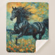A beautiful black stallion galloping through the flowers AI generated art based on my own horse photography using the styles of a few famous painters from history in the prompt.