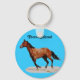 A photograph of a beautiful Thoroughbred horse galloping, displayed on a keychain. ---- Photograph is copyrighted by the photographer, Christina Spiegeland.