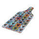 I use for a very first time glass cutting board. It is perfect! Much better than other materials like wood and plastic. Very light. It has very small "legs". Design and printing is great! Very vibrant and colorful. Brings smiles and happiness.