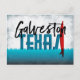 Galveston Texas surfing design. A red surfboard with blue and turquoise text - typography surfer theme.