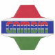 Gambia Flag Patriotic Soccer Ball with the white outlined inscription "Gambia" displayed in the middle part of the printable space. Inscription is infused with the pattern from the Gambia national flag in the red, white, blue and green colours. Background is covered in the combination of the colours from the Gambia national flag. Gambia flag football is the perfect present for any Gambian football fan proud of their heritage.