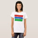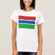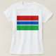 The front of this t-shirt boldly displays the Gambian flag with its distinctive red, white fimbriated blue and green horizontal bands. This is matched at the back by an attractive map of Gambia.