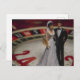 A wedding couple figurine on a casino table with casino chips in the background showing that someone is betting on marriage