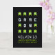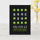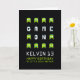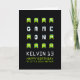 Bright green alien monster pixel block 3d graphic characters on black, personalized 13th little brother birthday card. Fun crazy block graphic pixel 3d crazy monsters aliens video gaming geek-themed birthday card. Other matching items are available. Designed by www.mylittleeden.com on Zazzle.