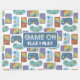 Makes a great gift for anyone who loving gaming. The design features a pattern of bright coloured game controllers along with "Game On" in a retro type and can be personalised with name(s).