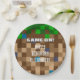 Game On Pixelated Grass Block Gaming Birthday Paper Plate