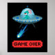'Game Over' Alien Flying UFO Spaceship, Pixel Art Poster