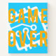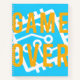This graphic boldly captures the phrase "GAME OVER" set against a vibrant blue background, intertwined with an abstract, circuit board-inspired design in white. The design's high-contrast, bold yellow letters grab attention, while the intricate circuit lines evoke the essence of digital technology and gaming. This visual interplay between text and circuitry not only appeals to gamers but also creatively symbolises the end of a digital journey or game. This image would be perfect for gaming related content, apparel, or even as a stylish poster for a gaming room.