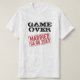 Game Over funny t shirt with wedding date stamp. Fun wedding day gift idea for newlywed couple and honeymooners. Personalise this present for bride and groom. Vintage style tee with red rubber stamp marking date of marriage. Cool tee for the bachelor / husband.