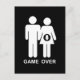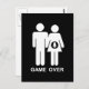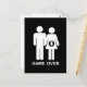The universal man and woman symbols, holding hands, woman showing a womb/foetus, and with "Game Over" text caption. B/W design, on t-shirts, sweatshirts, cards, gifts.