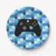 Gamer Boy Blue Pixels Birthday Paper Plate