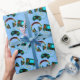 Gamer Retro Neon Pattern Blue Wrapping Paper