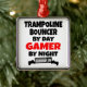 This text design features the phrase "Trampoline Bouncer by Day Gamer by Night" and is perfect for any trampoline bouncer who loves playing video or computer games.