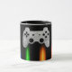 Gamer Video Game Controller Neon Colours Black Mug. Gaming controller on a vivid colourful neon lights on a black background. Great for a real gamer.