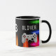 Gamer Video Game Controller Neon Name Age Mug. Gaming controller on a vivid colourful neon lights on a black background. Add your name and age. Great as a birthday gift for a real gamer.