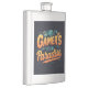 The product is a good size and came exactly as it was pictured. The lid is not attached to the flask, which could be dangerous on drunken nights... The print came out surprisingly well and looks very sharp. Would definitely recommend.