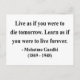 "Live as if you were to die tomorrow. Learn as if you were to live forever." - Mahatma Gandhi