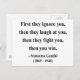 "First they ignore you, then they laugh at you, then they fight you, then you win." - Mahatma Gandhi