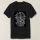 I give wanted to give this a 4 instead of a 5 because these Basic DARK T0shirts run unexpectedly SLIM or Narrow. Which is great if you do not have a potbelly, but I have a paunch. It isn't the shirt's fault that I've got a beer belly. The design and shirt itself is a quality cotton shirt. The color is more of a deep purple, but still a very pretty color. The Basic DARK T-shirts run a bit SLIMMER than the Basic Ts. The neck is a fraction narrower (or seems to be narrower) also. I'm a paunchy middle-aged woman and my neck is 12 inches (31cm) thick and the neckline fell about the same as in the photo of the man, and I had the desire to tug it a bit. So if you're a thick necked man or like loose shirts, be aware these are slimmer shirts. Once I get rid of my lockdown paunch it'll look great. The shirt washed well in cold water with no apparent bleeding. We don't have a dryer, so it hung dry. Did not shrink. Love the colors and the design. The design looks smaller on my shirt than it does on the model on-line. But still, it looks good on the shirt. The printing looks as it does on the model, just the size seems fractionally smaller. Washed garment in cold water, hung dry and design appeared unaffected.