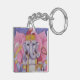 A keychain with my 18" square watercolor pencil painting of Ganesh. Ganesh is a Hindu god. He is the remover of obstacles, patron of arts and sciences, the lord of intellect and wisdom, the god of beginnings, and patron of letters and learning. He holds his own broken tusk in his lower-right hand and holds a delicacy, in his lower-left hand. In one upper arm, he holds an axe, and in the other upper arm, a noose. I have placed him seated in front of a pink lotus flower, as part of a symbol of new beginnings unfolding.