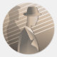 Illustration of a fifties style man wearing a hat and overcoat lurking in the shadows. Image available on various gifts and products.