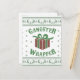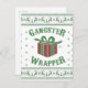 Gangster Wrapper in ugly sweater style in green and red adorned with jumping reindeer, snowflakes and a large red wrapped gift.
