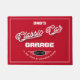 Dad's garage or any name hotrod garage with white retro garage script digital graphic on a red background. Just use the personalise this template option to change the text to suit.