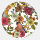 Hand-drawn garden birds- robin, goldfinch and bulfinch on bouquets of flowers and leaves- dahlias, chrysanthemums, calendula, coneflowers ivy and ferns