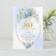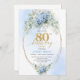 Celebrate a remarkable milestone with this 80th birthday invitation featuring one of today’s most trendy and elegant color combinations: blue and gold. Designed with soft watercolor blue hydrangeas, fresh eucalyptus greenery, and refined gold floral accents, this invitation brings a sense of calm sophistication and joyful celebration to an unforgettable occasion.